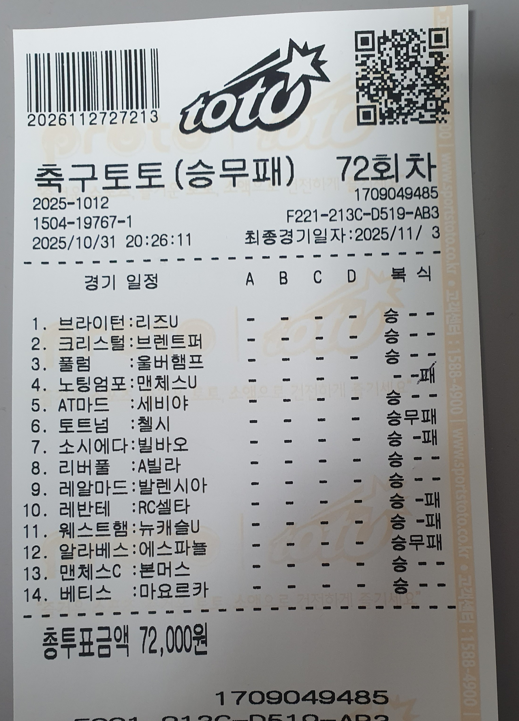 축구 승무패 해보려 하는데요..